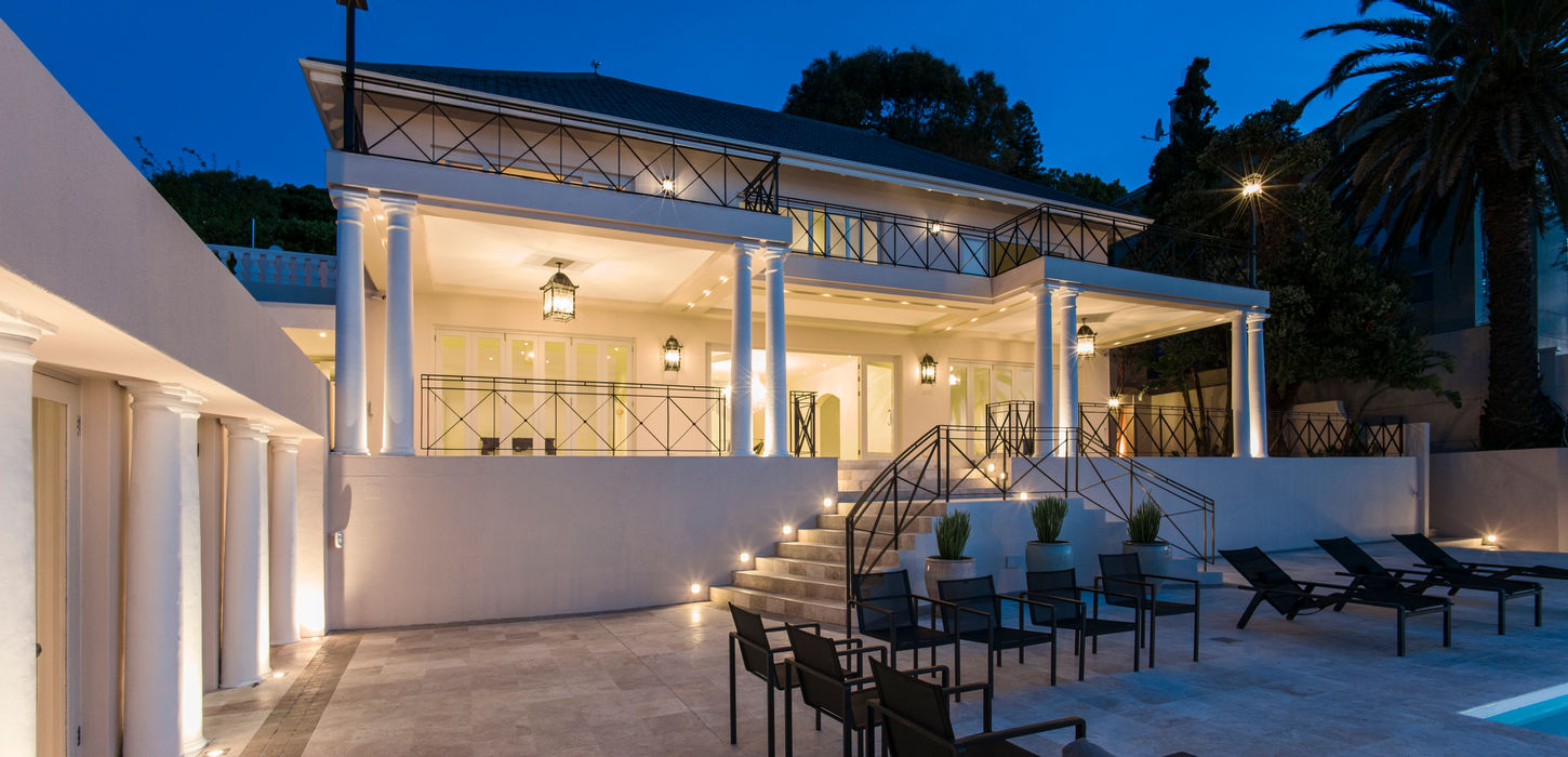 A luxurious statement home in Bantry Bay, Cape Town, featuring expansive entertainment areas, a rim-flow infinity swimming pool, and stunning ocean views.
