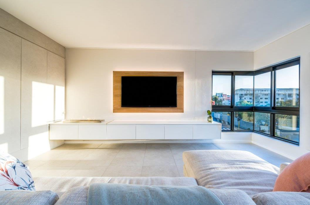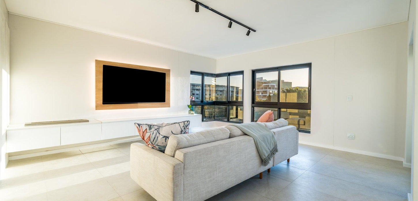 The third-floor corner unit, bathed in natural light, offers panoramic sea and mountain views, including a majestic full Lion’s Head vista. The private entrance leads you into a generously sized open plan lounge and dining area, framed by large windows and access to a beautiful private and protected balcony. The spacious lounge comeswith a chic biofuel fireplace, perfect for Cape Town’s enchanting winter evenings.